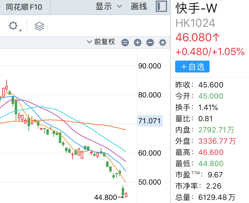 然而次日开盘,快手股价一度重挫14%,市值单日蒸发超300亿港元,甚至带动恒生科技指数集体下挫。而从去年四季度的高点以来,快手股价已经腰斩。