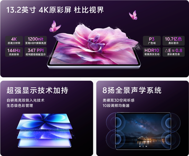 产品核心搭载13.2英寸4K原彩屏,支持杜比视界,视听体验沉浸;配备第五代骁龙8至尊版芯片,性能实现跨越式升级;软件层面集成PC级WPS和剪映专业版,兼顾学习办公与视频创作。其版本原价与首销优惠价分别为:8GB+256GB(4499元/4299元)、12GB+256GB(4999元/4499元)、12GB+512GB(5799元/5299元)、16GB+512GB 6699元。