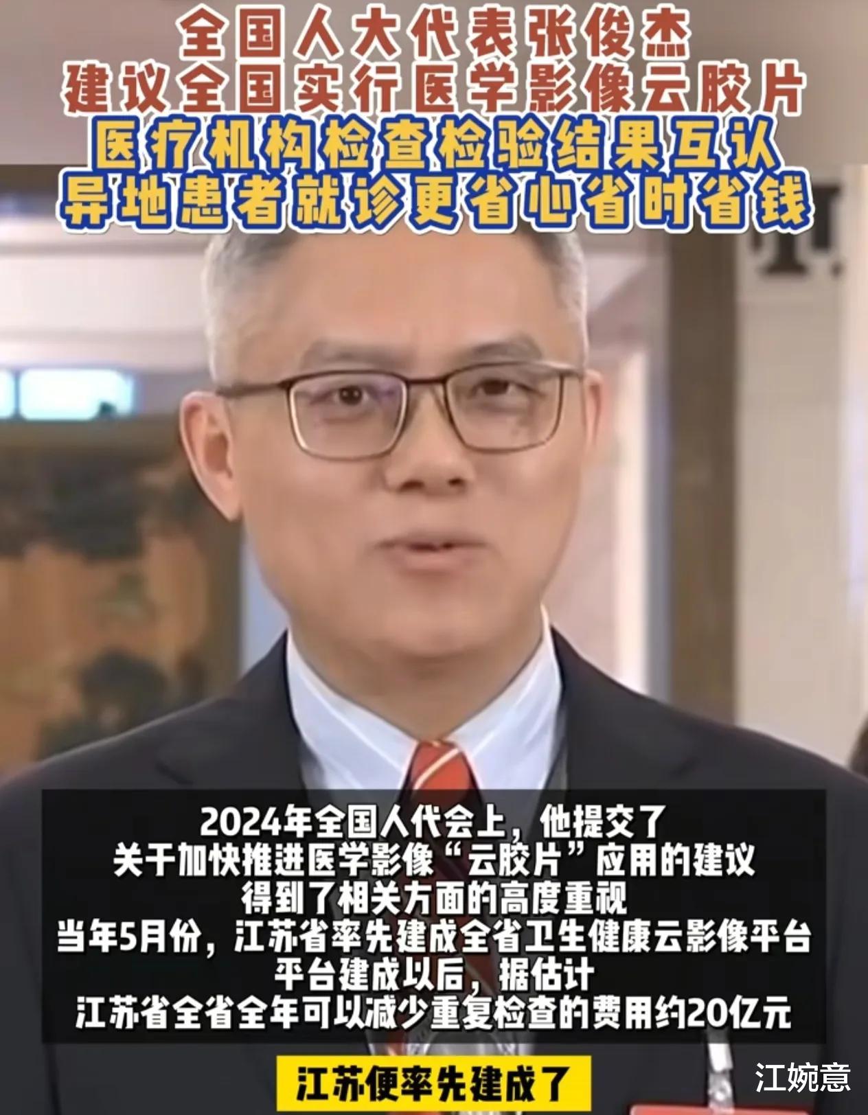 据张俊杰代表透露,在推进医疗机构检查结果通用互认这件事上,江苏已经是做出了成功的尝试。