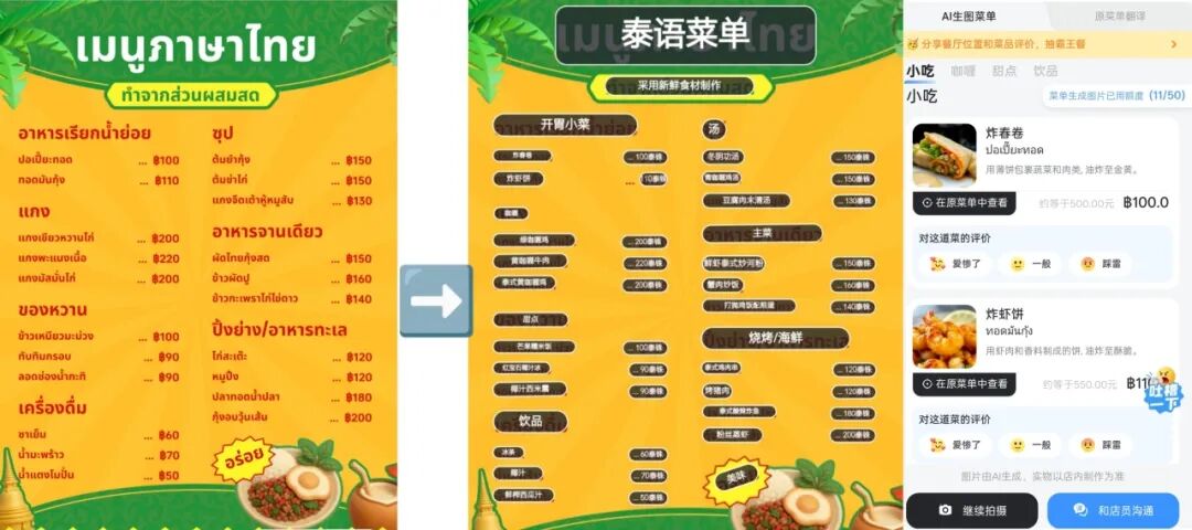 右边为马蜂窝翻译的菜单和生成的参考图片