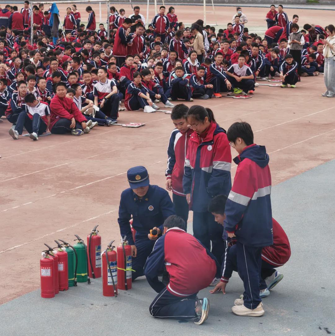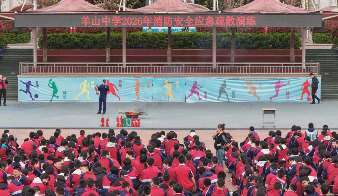 为进一步增强师生消防安全意识,提升应急避险与自救互救能力,4月2日上午,信阳市羊山中学组织开展了一场紧张有序的应急消防演练。活动分为疏散演练、技能实操与安全教育讲座两部分,学校领导、前进消防站队员、八年级全体师生及重点岗位人员共同参与。