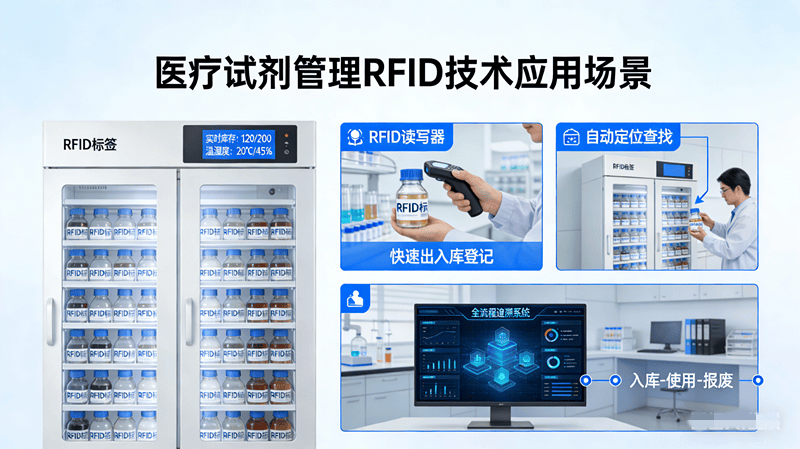 在医疗机构的日常运转中,体外诊断试剂作为检验科、病理科和科研实验室的核心物资,其管理精度直接关系到诊断准确性、患者安全与运营成本。然而,长期以来,试剂管理深陷“人工盘点耗时费力、效期监控形同虚设、问题追溯无迹可寻”的困境。射频识别(RFID)技术的引入,正在彻底改变这一局面——通过为每一支试剂赋予唯一的“数字身份证”,医疗机构正实现从传统粗放式管理向精细化、自动化、智慧化管理的跨越。