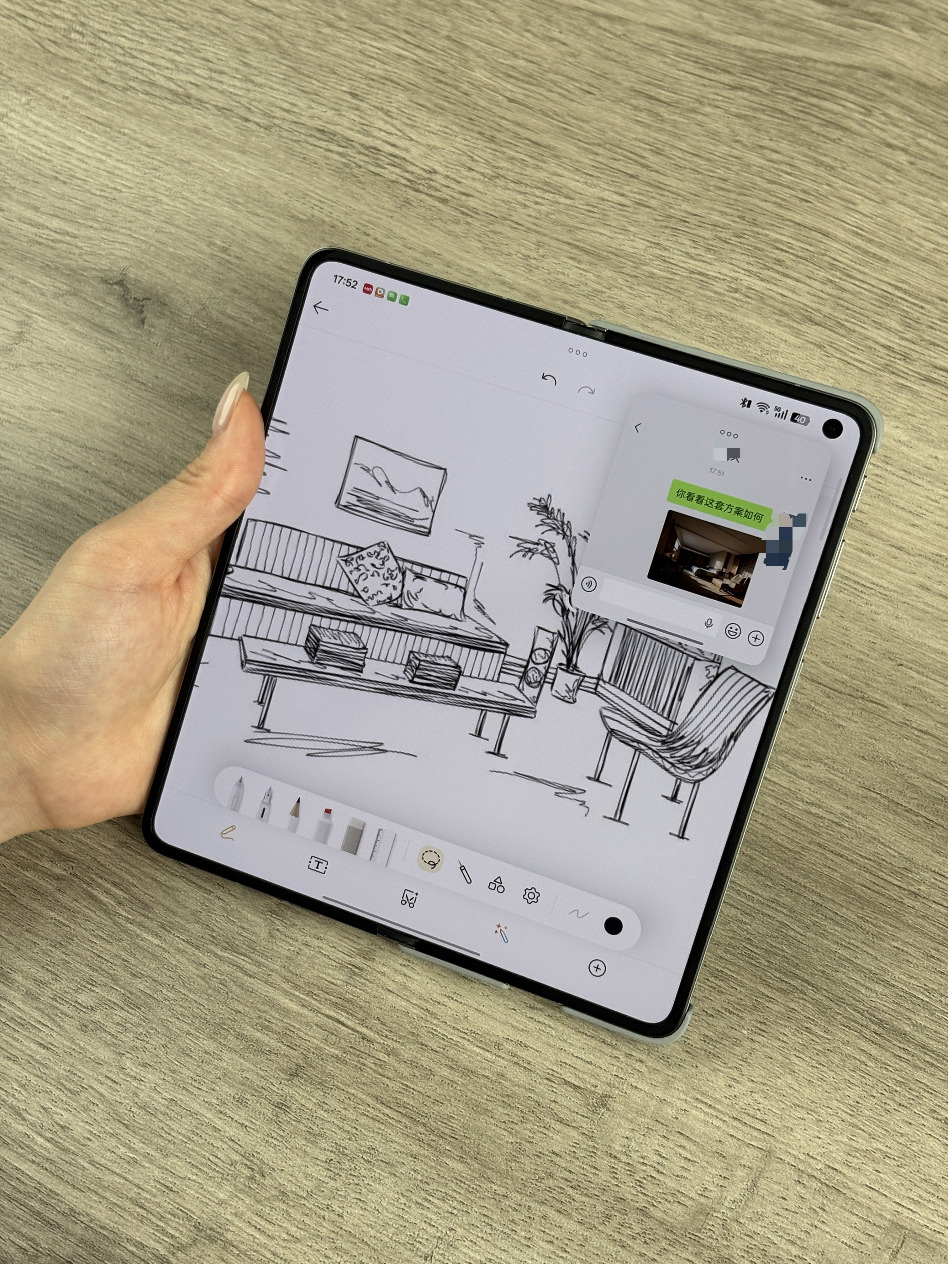现在日常工作也离不开它了。大内屏完全可以一边画平面草图,一边开着小窗跟客户扯皮软装搭配和色彩明度,不用来回切App切到崩溃。平时在网上看到惊艳的案例,直接用一键闪记存下来,无缝丰富我的意向图库和设计思路。真心建议各位同行,如果不想休假还背着板砖电脑到处跑,一部OPPO Find N6,绝对是咱们室内设计师的续命神器!#甲方 #室内设计 #效果图 #CAD #软装 #草稿图 #折叠屏 #度假 #oppo #oppofindn6