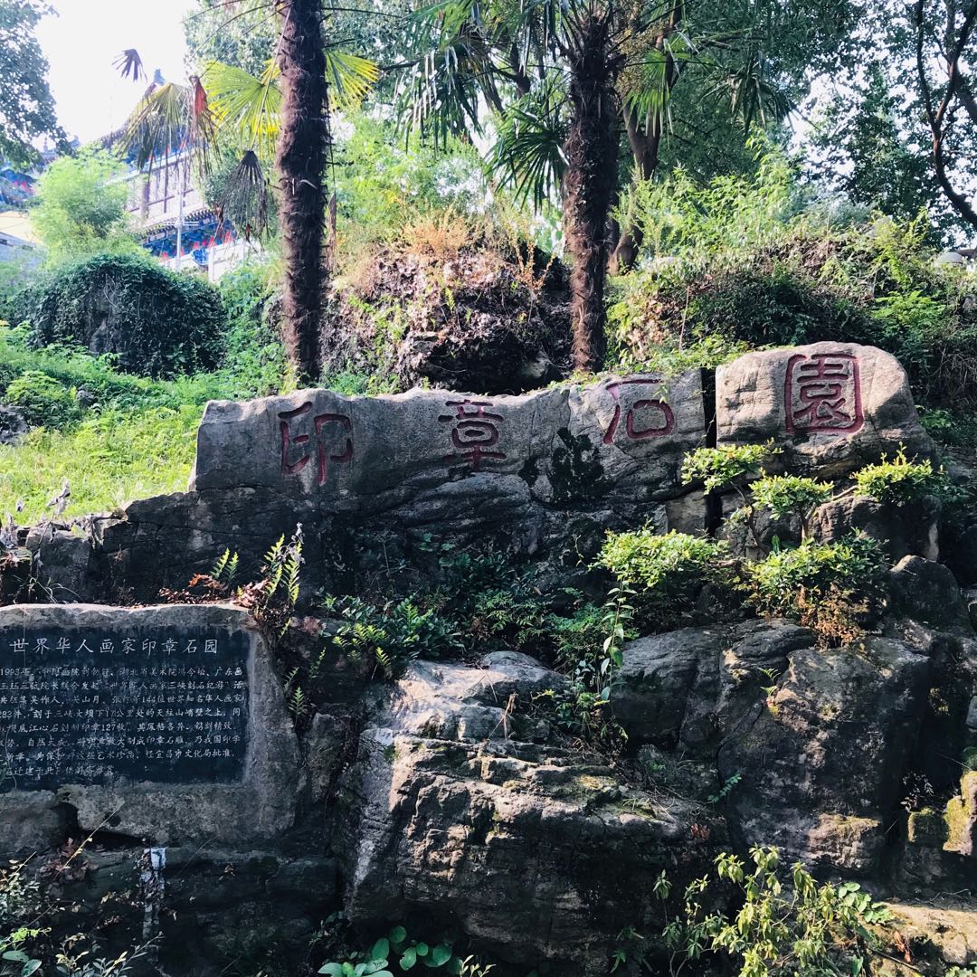 世界华人画家印章石园就坐落在三游洞景区游玩路线的后半部分,当你走在路上一眼望去,其实你会感觉到平平无奇,也不过是大片的石头摆成的石阵嘛,但是当你走近一看,细细品味时你会惊喜的发现,原来你已经走进了世界华人画家印章石园。