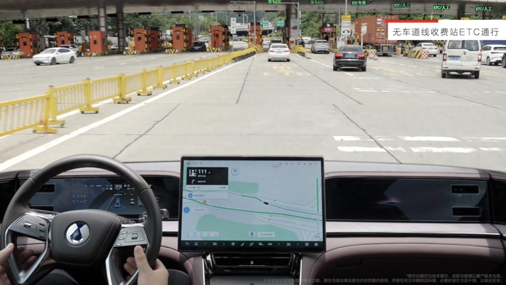 其中最亮眼的升级,就是其对ETC收费站通行场景的高度适配。传统智能驾驶系统往往在收费站前“束手无策”,但比亚迪却实现了车辆在无划线区域的自主博弈、精准行驶,还能智能识别道闸状态,在无需人为干预的情况下完成平稳通行。这项能力的加入,使城市与高速之间的连接实现真正意义上的“无感切换”,让“全程不接管”从口号变成现实。