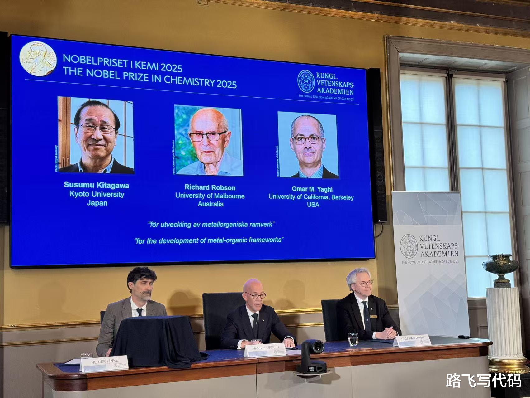 第二个则是日本无机化学家北川进,与理查德·罗布森(Richard Robson)以及奥马尔·M·亚吉(Omar M. Yaghi)共同获得了2025年诺贝尔化学奖,表彰他们在金属有机骨架开发领域的贡献,获奖者将平分1100万瑞典克朗(约836万元)奖金!