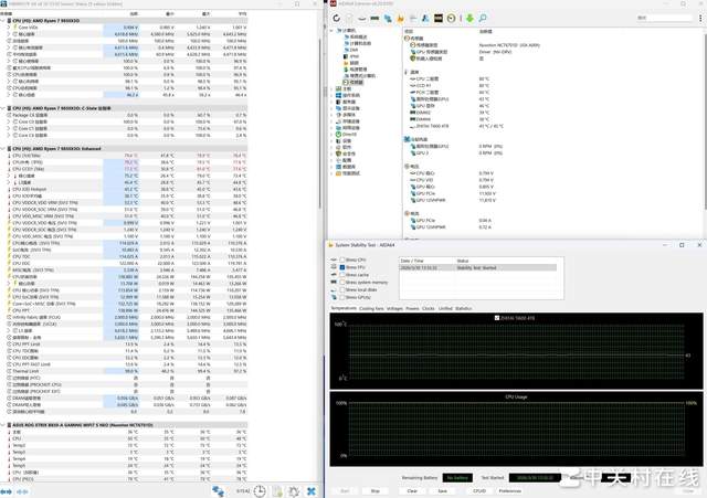最后我们进行拷机测试,记录华硕ROG B850吹雪S NEO主板开启PBO后锐龙7 9850X3D的温度功耗变化。