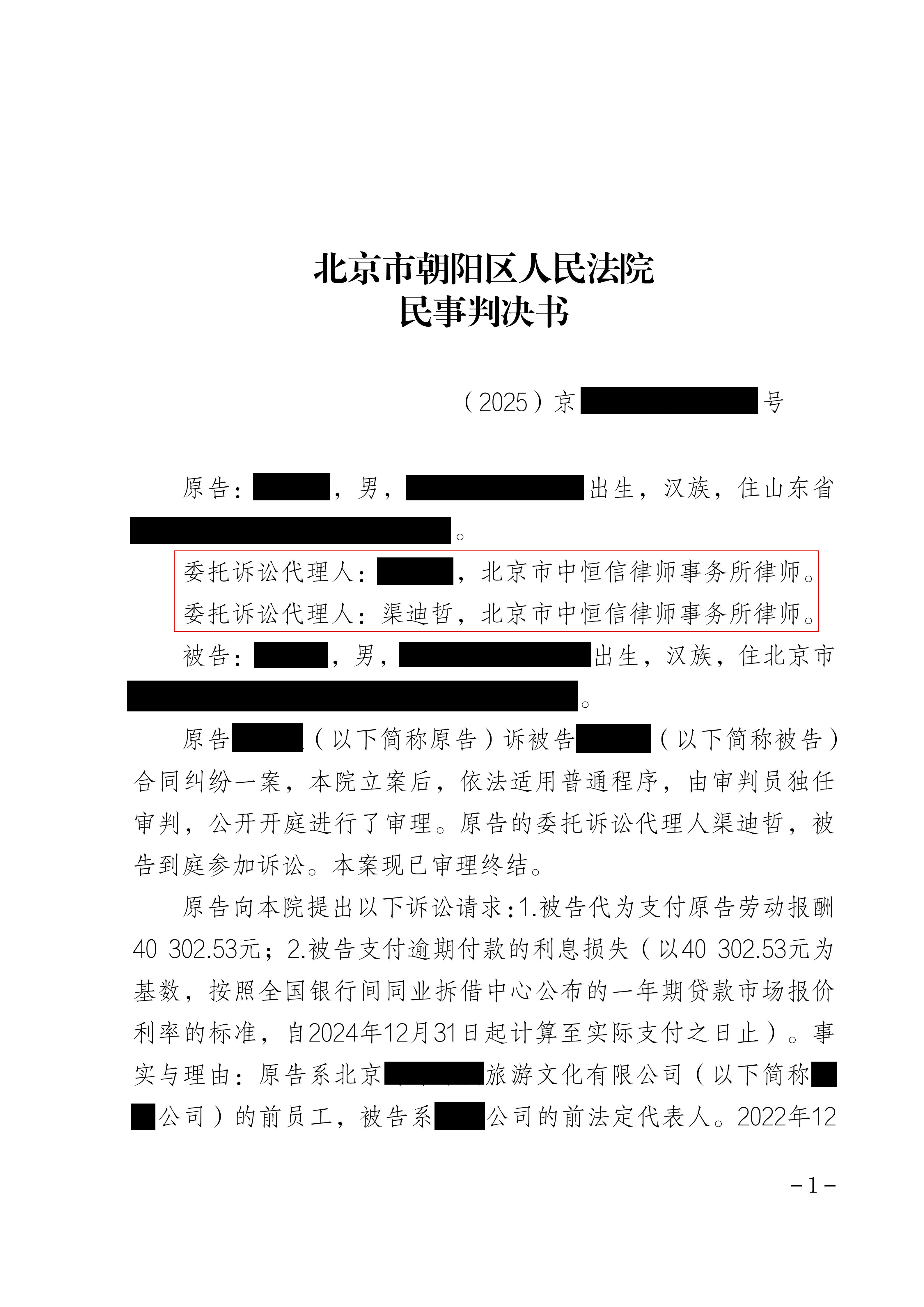 凭借深厚的法律功底与敏锐的办案视角,北京市中恒信律师事务所渠迪哲律师在代理一起涉及执行和解协议履行纠纷的案件中,精准识别法律关系的核心争议,巧妙调整诉讼策略,最终成功为客户赢得胜诉判决,确认被告需依约履行还款义务。