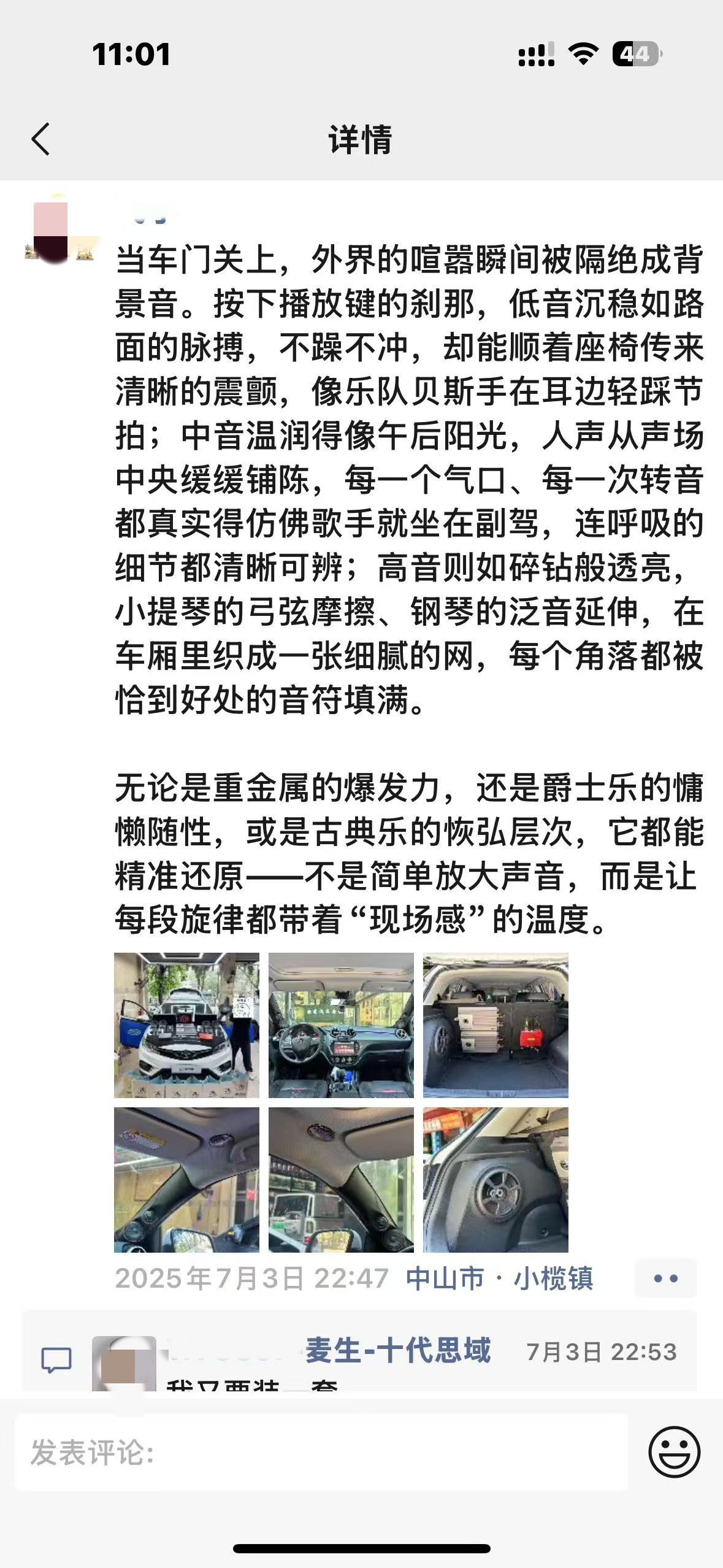 汽车音响改装不是一堆器材的简单堆砌,而是需要有靠谱的、技术熟练的师傅对音响系统进行精心的搭配和悉心的调教,只有这样才能发挥出一加一大于二的音质效果。今天这一台东南DX3的改装案例,从门板共振到声场定位,从低频缺失到氛围单薄,每一项痛点都被精准击破,人声细腻真实,音乐在头顶出,音质非常完美,车主也用了毕生文采表达对音响的热爱