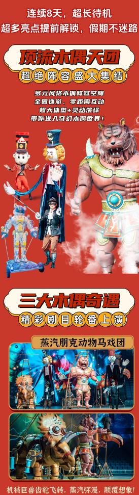 乐园特邀国内知名剧团——森吧啦木偶剧团倾情献艺,将巨型木偶艺术与园区特色游乐项目相结合,为亲子家庭呈现了一场兼具文化魅力与欢乐体验的假期文旅大餐。