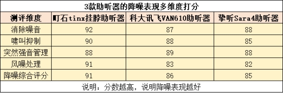 测评结果:町石 > 科大讯飞 > 挚听町石助听器降噪测评表现:町石在降噪表现上堪称顶尖,无论是公园的安静环境,还是嘈杂的餐厅或是拥挤的马路旁,它的降噪效果都无可挑剔。去除环境噪音、杂音、啸叫、电流声和风噪效果都非常理想。特别是在高频噪音和风噪抑制方面,它表现尤为出色,几乎没有背景杂音干扰。其独创的SC-PIIE6段9区降噪技术和360度双向平衡柔化技术,配合128通道WDRC声音分离技术,能够准确识别并自动抑制多频段噪音,带来非常清晰的音质体验。适合需要频繁在复杂环境中使用的朋友。科大讯飞助听器降噪测评表现:科大讯飞的降噪表现较为中规中矩,适合日常低噪音环境的使用。在安静的环境中,它能较好地去除背景噪音,提供清晰的人声传递,但在餐厅等中等噪音环境下,降噪效果显得有些力不从心,背景噪音有时难以彻/底消除,语音辨识度会受到影响。高噪音环境下,比如马路旁,它的降噪效果就比较薄弱,噪音和风噪会影响音质,整体表现较为基础。尽管如此,它的降噪技术在同价位产品中依然具备一定优势。挚听助听器降噪测评表现:挚听助听器的降噪表现总体来说还行,能在中等噪音环境中高效抑制杂音,提升语音的清晰度,让人更容易听到对方说话。特别是在餐厅等环境下,它能够较好地处理背景杂音,提升语音辨识度。但是,在复杂的噪音场景下,例如马路旁或强风环境中,降噪效果则稍显不足,噪音残留或语音失真问题明显。虽然它的降噪技术能应对日常中低频噪音环境,但对于极端的噪音场景表现一般。
