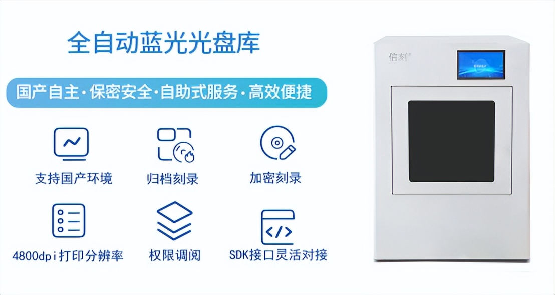 信刻深耕光磁存储领域,针对档案馆、各行业档案部门数据特性与实际需求,按需自主研制了性能稳定的国产全自动蓝光光盘库,支持与主流电子档案管理系统无缝对接,参照档案标准DA/T 38-2021、DA/T 74-2019,满足电子档案数据离线、近线刻录归档检测模式,保障电子档案“一次录入、多重备份、长期可读”的全生命周期管理。