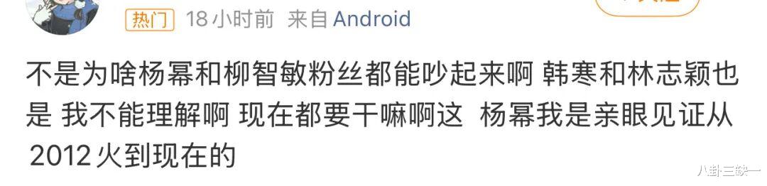 俺不中嘞,这年头的娱乐圈真的是随时随地上演粉丝乱斗,主打一个防不胜防。本来嘛,有竞争关系的艺人争资源、同一部戏的男女主抢番位、同类型的流量比镜头,粉圈为了自家哥哥姐姐的排面吵两句,也算是家常便饭了,没什么稀奇。可谁能告诉南风一下,在领域不同(一个顶流演员,一个当红爱豆)、毫无交集(可能互相不认识)、甚至国籍都不一样的情况下,杨幂和柳智敏的粉丝也能火星撞地球一样吵得昏天黑地啊?