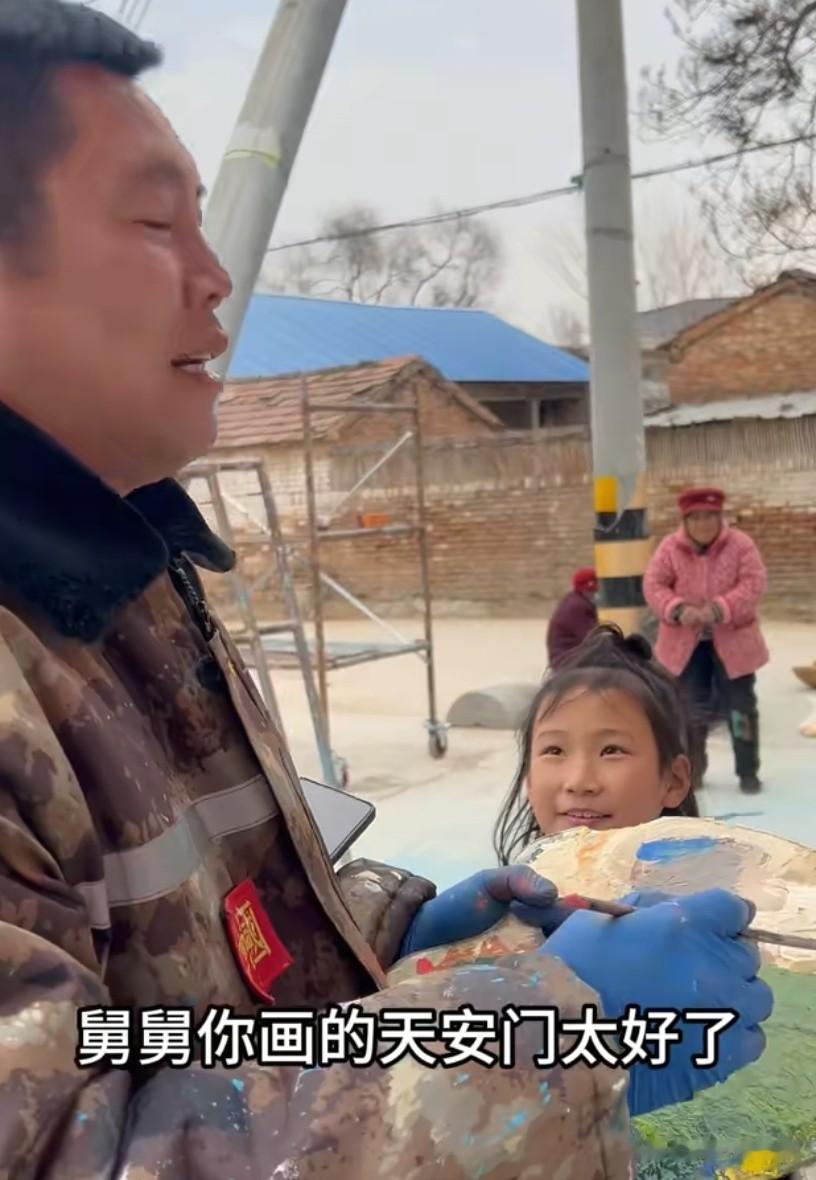 要画天安门的消息,在村里传来后,村里的老人也像孩子一样,一会来看一下,一会来看一下,脸上写满了期待……