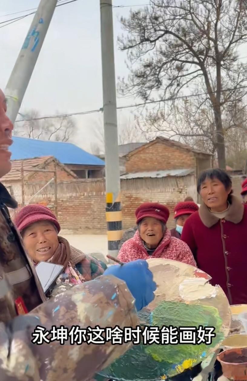 老人们每天都过来看看画到什么程度了,走的时候还不忘问他,还有多久能画完?