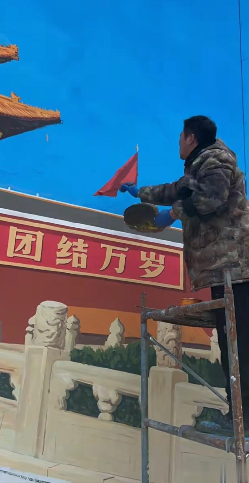 他因为今年春节画了一幅哪吒在网络大放异彩,这次他又准备做一件大事,圆上村里老人“看天安门”的梦想,他们这辈子就想着,能跟天安门近距离合个影!