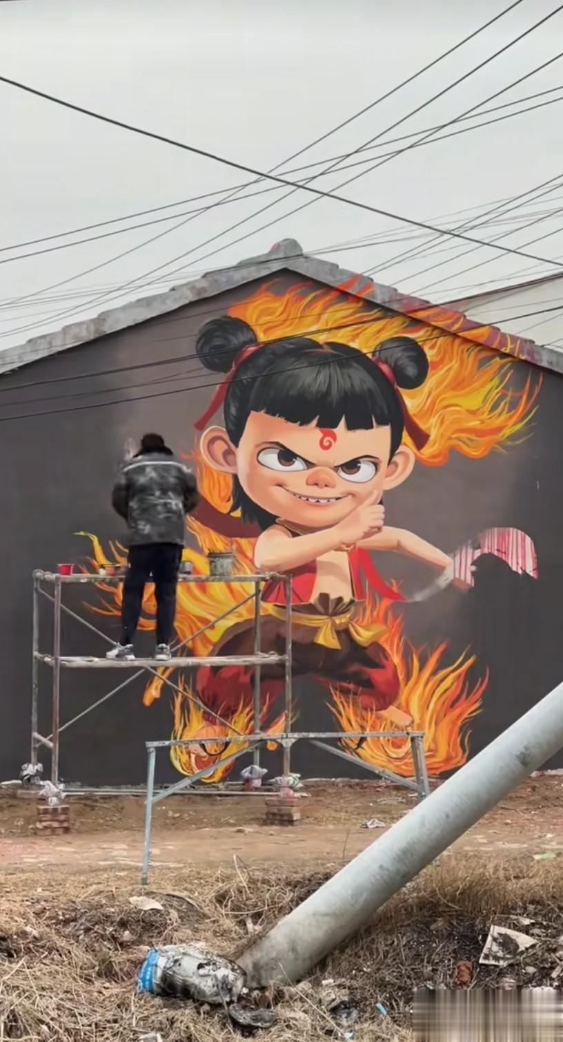 他的一幅哪吒墙绘,瞬间走红网络,吸引了很多游客前来打卡,昔日宁静的小村庄,因为一幅画变得热闹非凡。