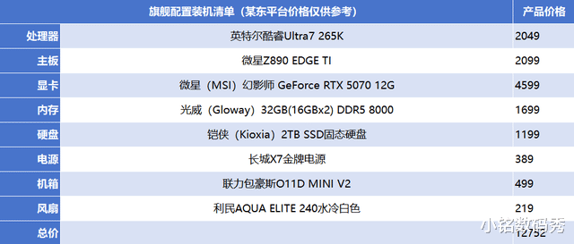 265K装机配置推荐在实际装机上,在265K这个价位段,其实我们就是需要使用更高规格的显卡的,这里比较推荐的就是5070,当然如果预算实在不足也可以退而求其次选择5060,也能满足日常需求。这两套组合都不会出现显卡与处理器不均衡的问题。下面这两套配置可以根据自己的实际预算去入手。