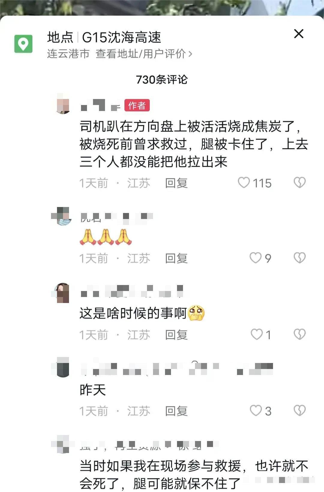 从另一些评论者口中,也证实这件事极有可能是真实发生的,虽然还没见到官媒发声!有人询问为什么不用车拉开驾驶位,但是看视频和其他人的描述,火势蔓延的速度是超乎想象的,不过短短的几分钟,就已经烧到驾驶位了。