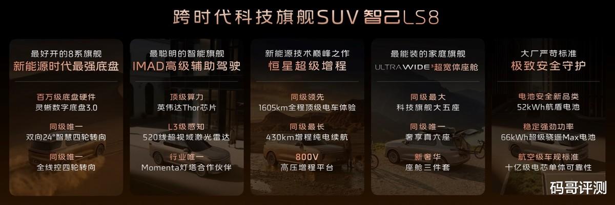 作为新能源技术的巅峰之作,智己LS8搭载的恒星超级增程,不仅是新增程,更是超级增程,全程都能享受顶级电车的澎湃动力、极致静谧、超低能耗。智己LS8拥有同级领先1605km (CLTC) 综合续航,百公里油电综合折算能耗低至2.54L,从上海开到西安全程都无需补能;更无惧高原,任何海拔都是性能猛兽,彻底解决油车“高反”与传统增程“亏电一条虫”的顽疾。