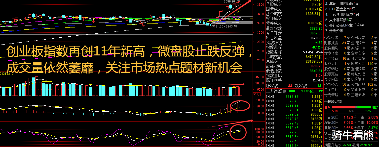 创业板指数周一低开高走,再度创出11年新高,两市个股并未普涨,却出现了涨多跌少的赚钱效应。美股市场依靠“债务换AI板块业绩”的情况仍在如火如荼的进行,但终有尽时,注意美股的走向,场内投资者注意设置止盈和止损。接下来注意创业板指数能否在3700点之上稳住。