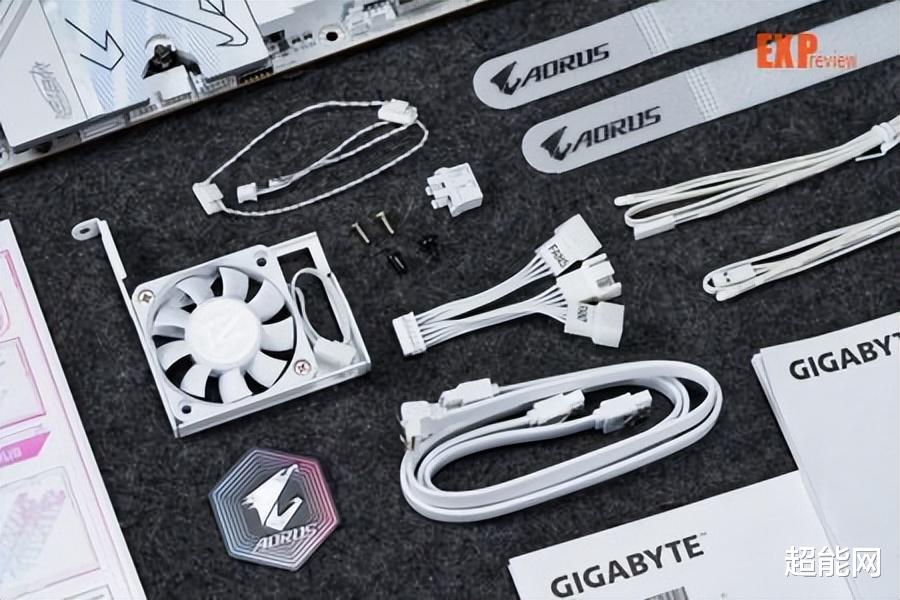 配件方面,除了常规的SATA线、信仰周边、纸质说明书外,技嘉还送了一个内存散热风扇、前置机箱面板接线的集线头、两根温度监测探头、一个噪音监测器、风扇延长线、魔术扎带还有一体直插式WiFi 7天线,其中的传感器在主板上是有对应专用接口的,这样的设计在高端主板上也较为少见,而WiFi天线只需要插头直接插入背部WiFi天线接口即可,无需像以前那样慢慢“拧螺丝”,提升安装体验。