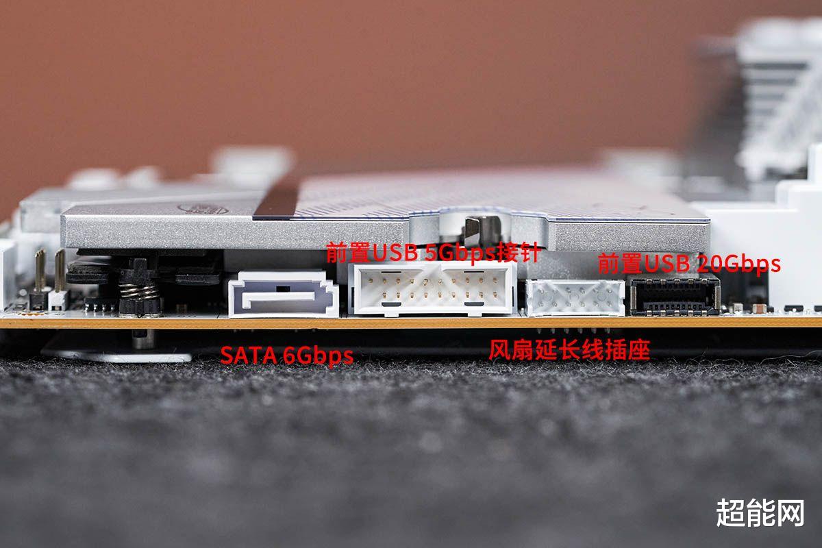 板载接口技嘉X870E超级冰雕的板载接口基本都集中在主板的右侧和下方边缘,有两个SATA 6Gbps口,一个前置USB 20Gbps Type-C扩展口,两组USB 5 Gbps扩展针脚,可扩展4个USB 5Gbps口,两组USB 2.0扩展针脚。前置USB 20Gbps Type-C接口支持65W PD快充,使用快充功能需要把主板24pin供电旁边的8pin显卡供电口也接上,这个口就是为PD快拆芯片供电的。