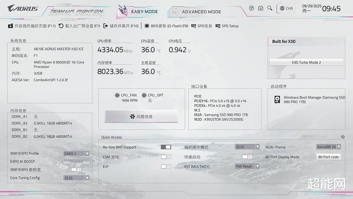 开启X3D Turbo 2.0很简单,在BIOS的简易界面右侧就有,当然在高级界面里也有对应选项。