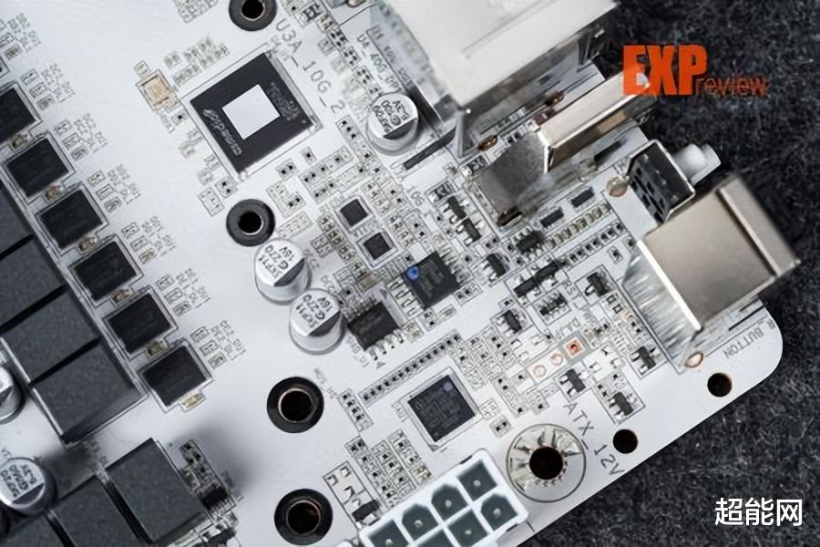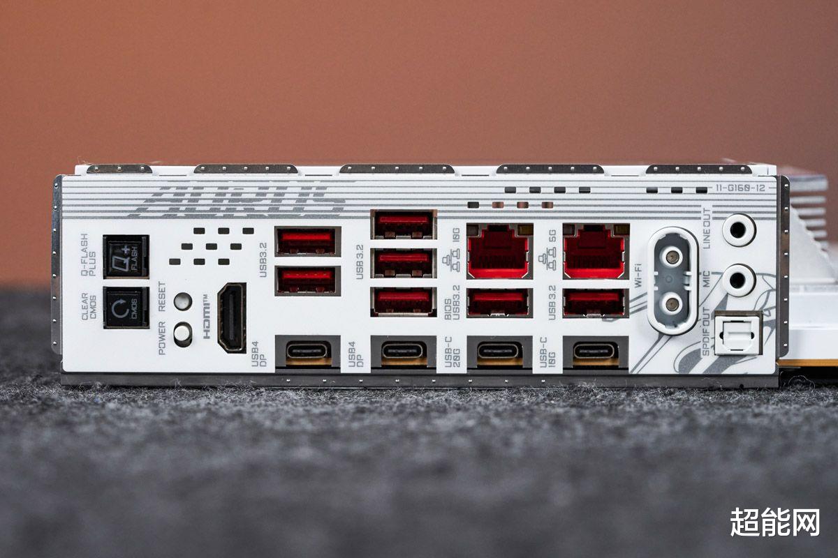 背板I/O这里加起来一共有11个USB口,包括2个USB4 Type-C口,这两个接口是由ASMedia ASM4242芯片提供的,可支持DP 1.4,支持最高3840x2160@240Hz。此外还有1个USB 20Gbps Type-C口,1个USB 10Gbps Type-C口,7个USB 10Gbps Type-A口,1个HDMI 2.1口,可支持最高4096x2160@60Hz。