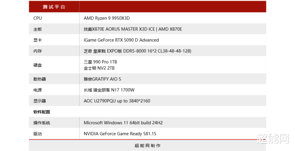X3D Turbo 2.0测试技嘉X870E超级冰雕主板上最让人好奇的莫过于它所具备的X3D Turbo 2.0功能,为了测试这功能到底能带来多大的提升我们 使用了AMD目前的旗舰处理器锐龙9 9950X3D,内存方面则找来芝奇 皇家戟 EXPO版 DDR5-8000 C38 16*2套装内存,显卡使用iGame GeForce RTX 5090 D Advanced。