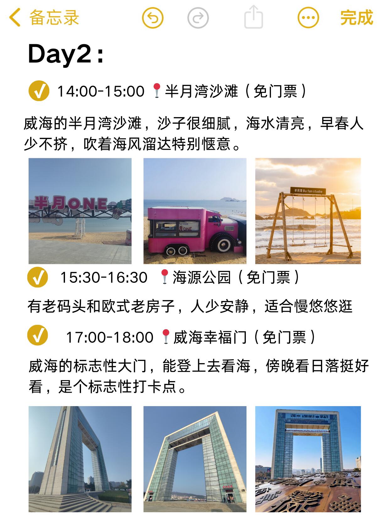 ✌️又去了半月湾沙滩,海水很清,安安静静待着特别舒服;旁边有个人少安静的公园,有老房子和码头,逛着很惬意。去了威海的标志性大门,在这里看海视野很好,一天逛下来轻松又开心。