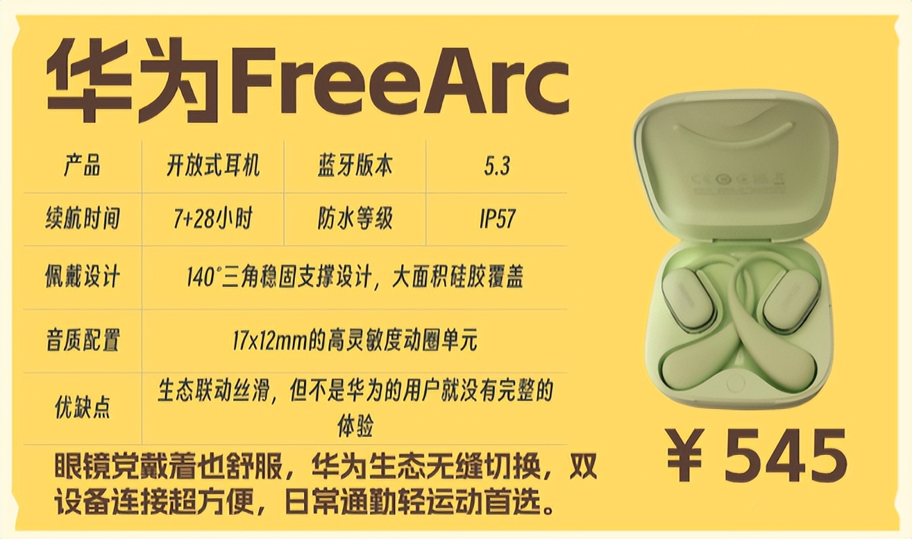 华为FreeArc这款耳机适合谁?华为/荣耀手机用户,日常通勤加运动都有需求,看重佩戴稳定性和智能交互的打工人。