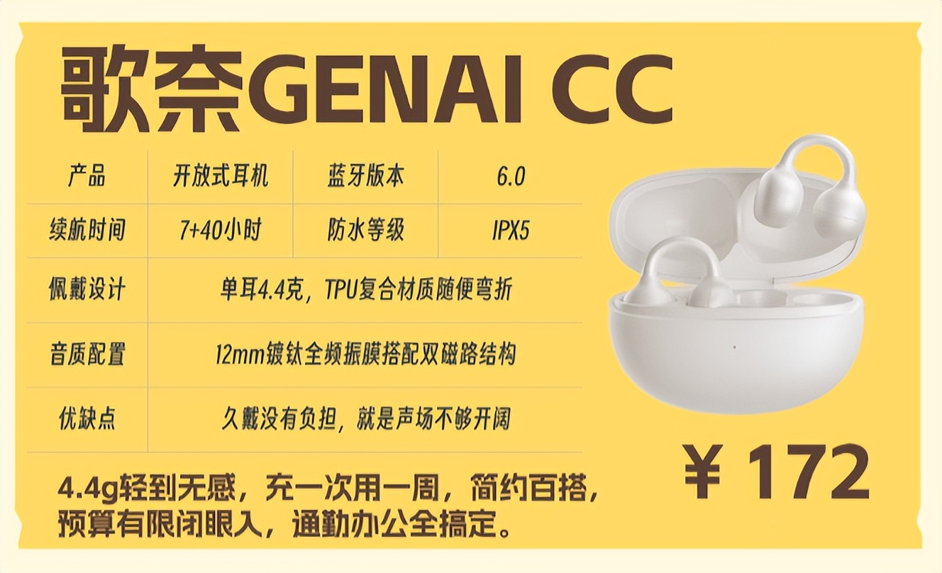 如果你预算只有两百块左右,想要一款能满足日常通勤、办公、轻运动的耳机,完全不用犹豫,歌奈CC就是性价比天花板,花小钱就能解决大问题,踩雷的概率极低。