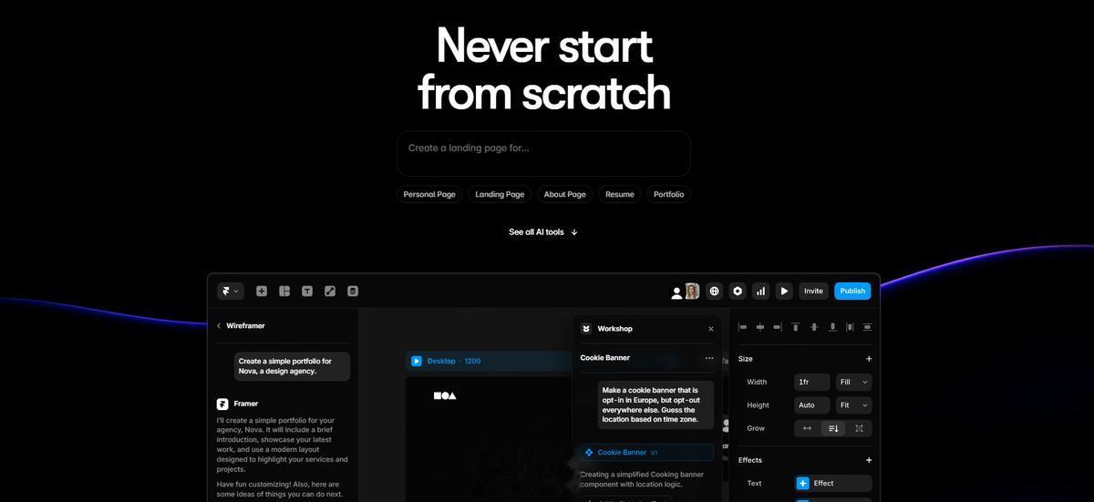 05.AI文生设计稿 - Framer AIFramer AI是知名原型设计工具Framer集成的AI功能,将传统的设计工具能力与最新的AI技术相结合,为设计师提供更智能的设计体验。