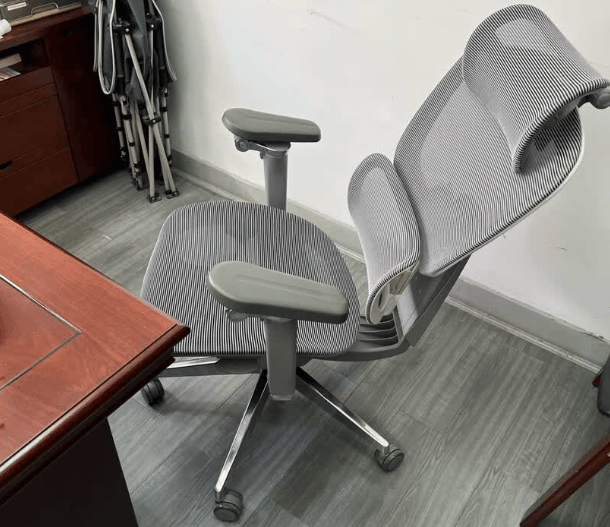 椅子是常见的工学椅造型,简洁实用,黑灰配色规整,放在办公区不突兀。双背联动用着很省心,腰背贴合支撑舒服,能明显减少腰部悬空的不适感。网布透气性不错,夏天久坐也不闷汗。调节功能全,线控操作顺手,日常办公调整姿势很方便。稍微不足的是腰靠上下调节范围不算大,对部分身高人群适配性一般,但整体支撑和稳固性都不错,满足日常办公没问题。