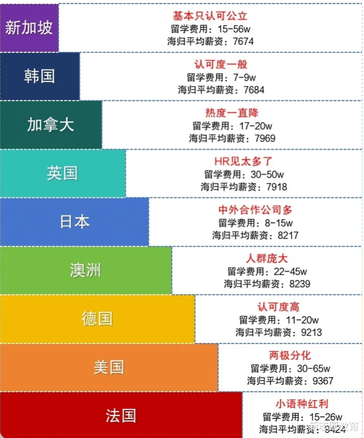 此外,一张《2024年各国海归平均薪资》图显示,来自法国、德国、美国、澳洲和日本的海归留学生的平均月薪在8892元,新加坡、韩国、加拿大、英国则在7811.25元。实际的薪酬,根据行业、岗位性质,可能会有所不同,以下数据仅供参考。