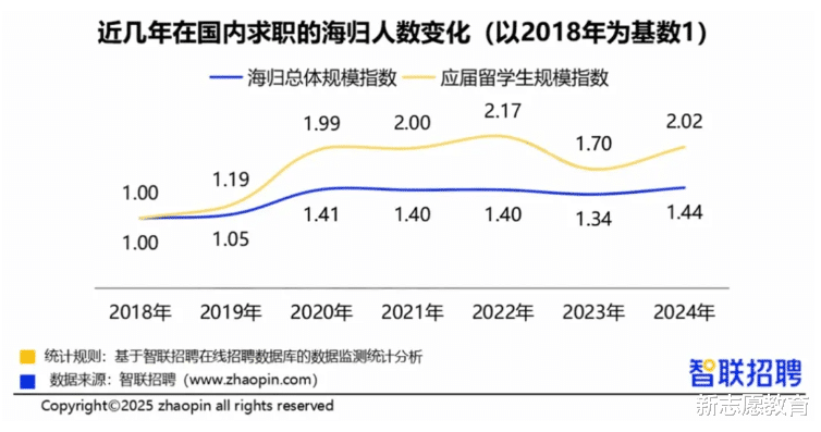 高薪岗位主要集中在专业技术领域,比如外贸经理18224元/月,出国留学考试培训讲师17772元/月,托福老师17575元/月,双语理科教师16991元/月。同时,跨专业发展也成为海归求职的新趋势,超7成海归尝试灵活就业,像短视频博主等,都反映出就业市场对复合型人才的需求在不断增加。