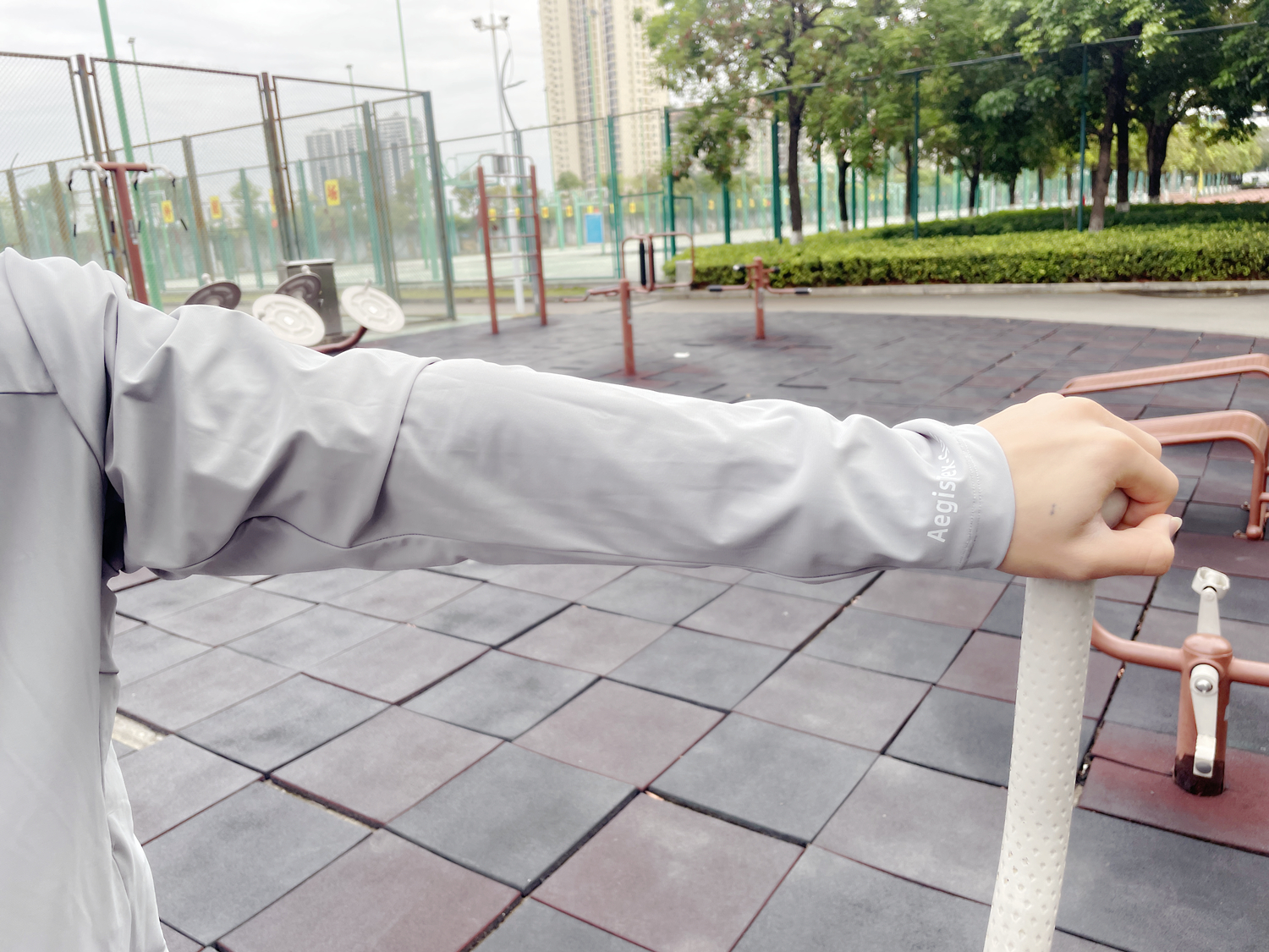 为了验证真实穿着场景下的透气效果,我在 35℃的高温天气,穿着北归线 T8 进行了 1 小时户外跑步 + 30 分钟通勤骑行,全程暴露在烈日下,没有任何遮阳措施。结束后我脱下衣服,后背、腋下完全没有黏汗感,肌肤依旧干爽清爽,没有传统防晒衣的闷热黏腻感。