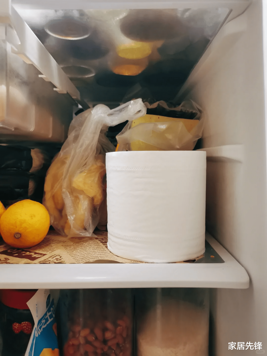 这样我们放在冰箱内部的食物可以保存的时间更久,卫生纸如果放时间久了,还可以放在阳光下再次晾干,再重新放回冰箱。