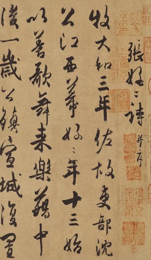 • 唐代(晚唐)杜牧《张好好诗卷》:虽已显露过渡迹象,但仍带唐法痕迹,笔法灵动却不失规整,内容是追忆歌妓张好好的生平,兼具实用记录与情感表达,但整体仍未脱离“诗稿应有的章法”。