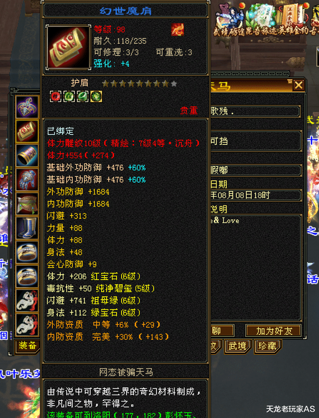 先是看到了这个亮瞎眼的天选冰气武当项链:血上限、冰攻击、闪避、会心、体力、定力、会心防御!