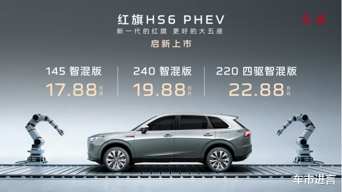12月16日,一汽红旗正式推出全新一代大五座旗舰SUV红旗HS6 PHEV。新车共推出145智混版、240智混版和220