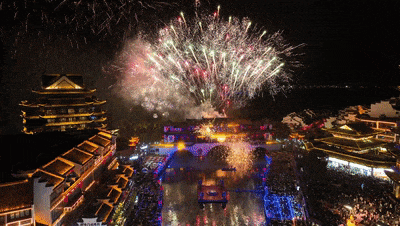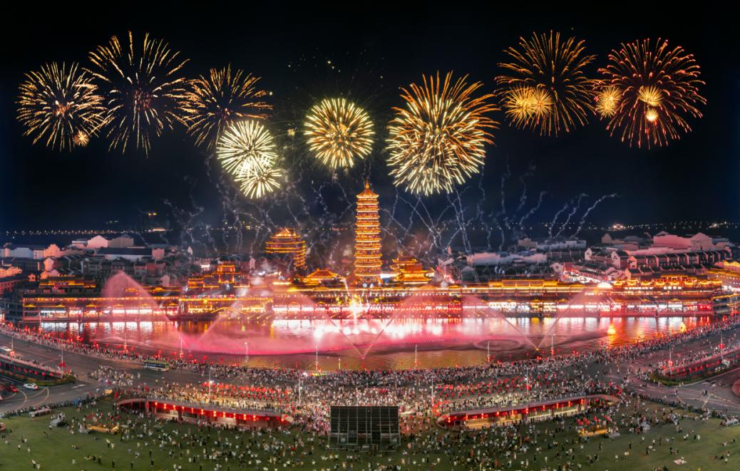 当夜幕降临,每日的烟花秀如期而至,搭配着非遗打铁花,湖面倒影流光溢彩,随手一拍便是电影感十足的大片。就用这一场璀璨的星河盛宴,定格假期最后的美好。