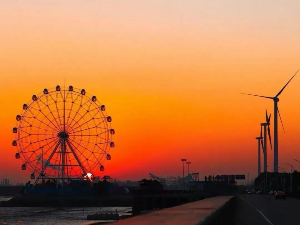 地处上海市南端、杭州湾北岸,海湾旅游区拥有13.7公里长的海岸线。以“蓝绿交融”的生态基底为特色优势,将优质生态资源与高标准体育设施深度绑定,索道滑水、帆板帆船、高尔夫等项目全覆盖。而这个滨海小镇还有另一面诗意:沿着堤岸漫步,滩涂视野极为开阔,潮水涨落自成韵律,听风观海,独享一份开阔与自由。摩天轮静静地转着,龙腾阁立在岸边,等到太阳开始西沉,渔人码头一天中最浪漫的时刻悄然降临,温暖与浪漫的光景仿佛一幅宁静的油画。