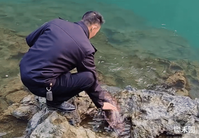 护鱼队员迅速警戒起来,并上报给镇上。经过检查,这条娃娃鱼十分健康,估计就是被岸边的石头绊住搁浅了,才意外被人类围观。