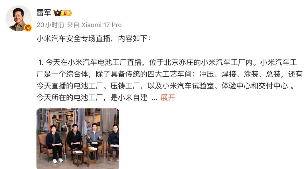 除此之外,雷军近日进行了直播,其中也提到了小米汽车的更多信息。