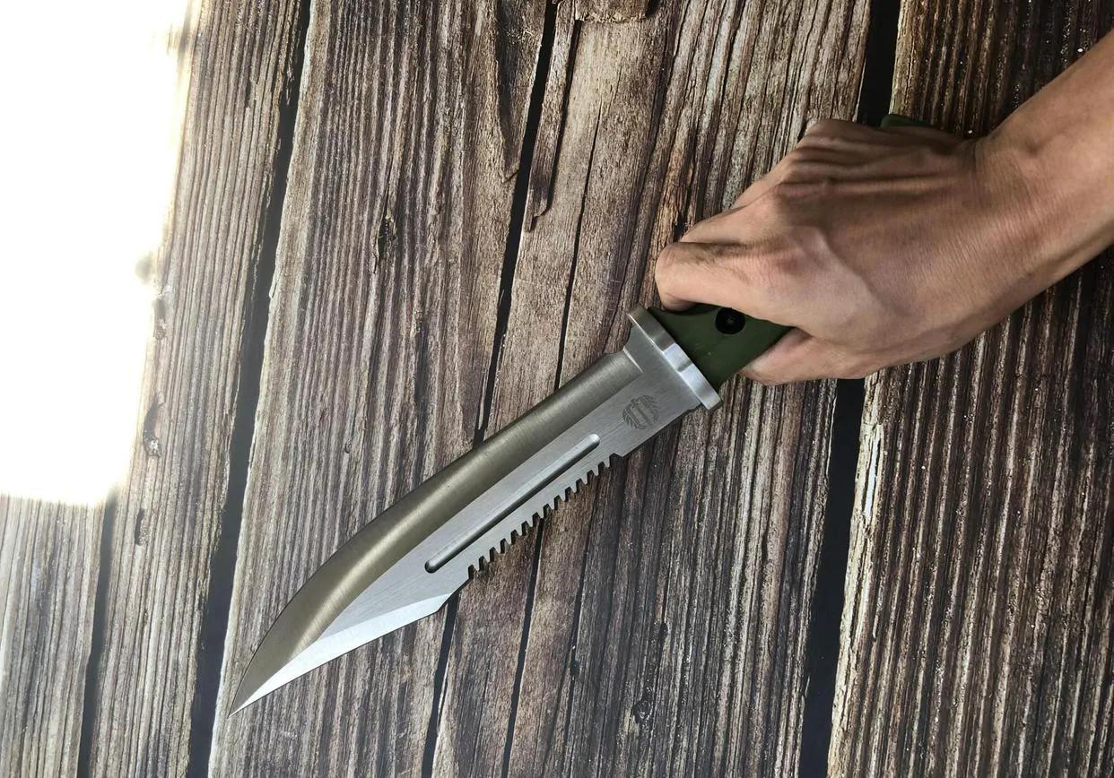 这把刀采用的制造刃材为有名的5Cr13,而柄材选用的是橡塑材料,橡塑材料具有多种优点。它质地轻盈,能够减轻刀具的整体重量,方便携带。同时,橡塑材料具有良好的防滑性能,即使在手部出汗或者接触到水的情况下,也能保证使用者牢固地握住刀柄,避免刀具滑落造成危险。该刀采用一体式结构,刀具的硬度达到了56HRC,使得刀具具有出色的切割性能和保持锋利度的能力。
