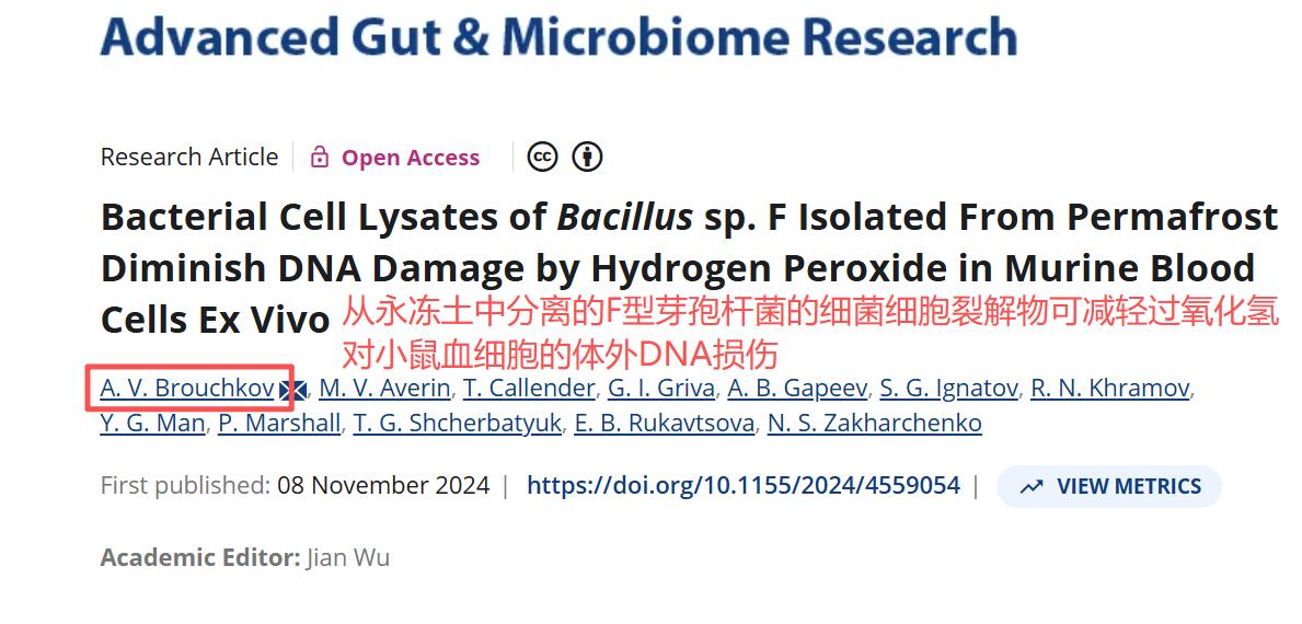 布鲁奇科夫团队后来围绕这种古老菌株做过一系列研究。相关研究论文显示,在小鼠模型中,这类来自冻土的芽孢杆菌F株曾表现出改善机体状态、延长寿命的迹象;而在更新的2024年论文里,研究者又报告称,芽孢杆菌F株的细胞裂解物在离体小鼠白细胞实验中,能明显减轻过氧化氢造成的DNA损伤,但论文同时也强调,具体机制并不清楚。