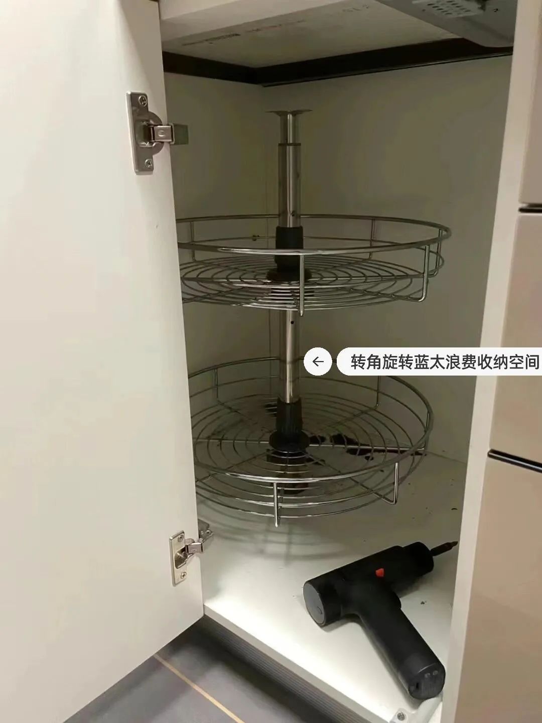 橱柜转角区是一块最容易被浪费的空间了,所以很多家庭为了将其利用起来,都会在转角处安装一个专用拉篮。