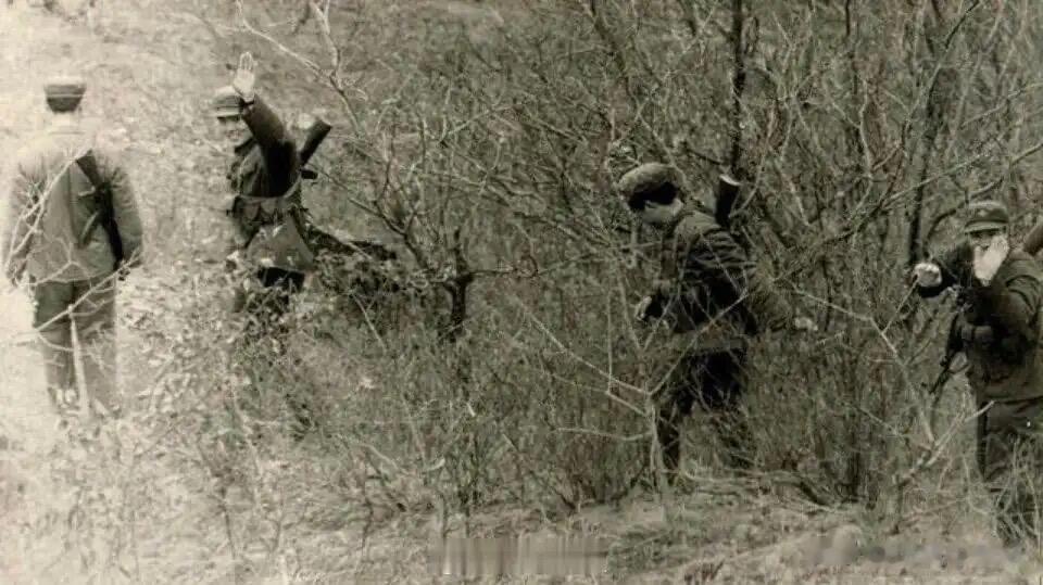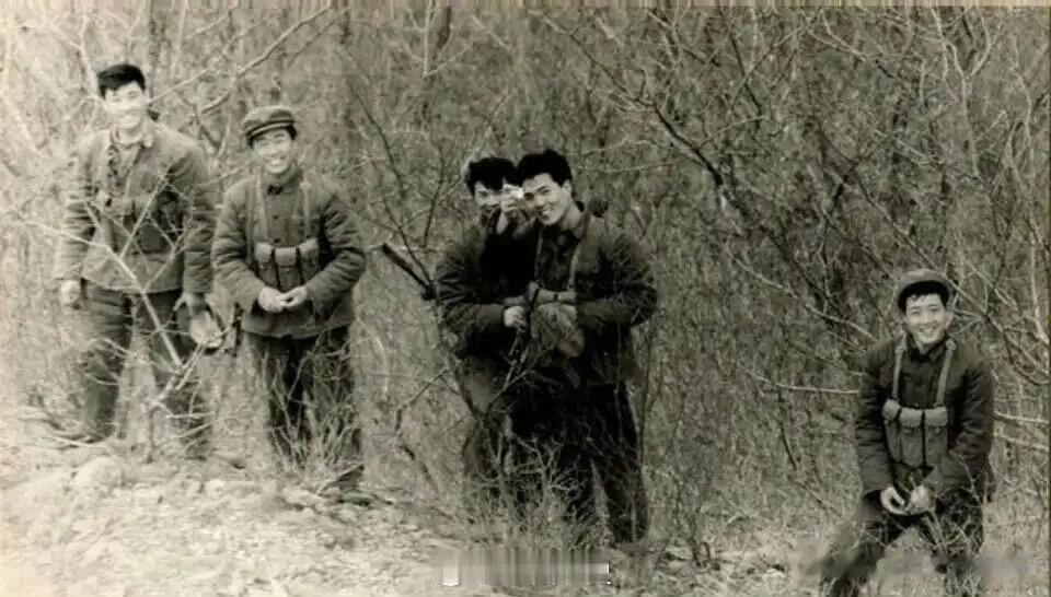 放大这些黑白照片,能看到许多耐人寻味的细节。战士们身着典型的65式军装,军帽上的红五星和衣领的红领章在黑白影像中虽不显色,却象征着他们的身份与信仰。有的战士背着56式半自动步枪,有的扛着火箭筒,装备虽不繁杂,却透着随时能投入战斗的警惕。